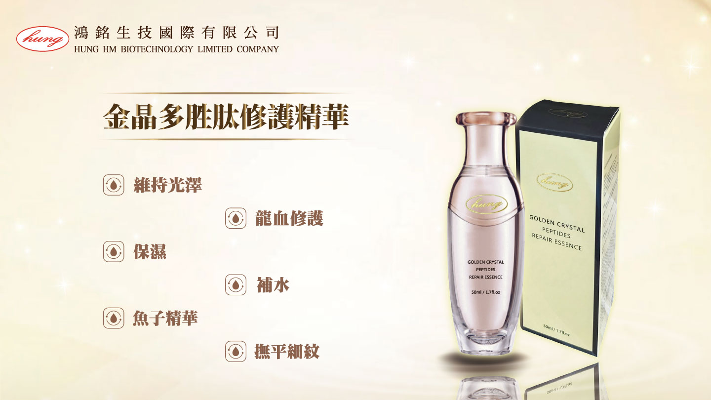 鴻銘生技自成立以來,秉持著人們對使用優質好產品的渴望,不斷追求創新,玻尿酸可以長效保濕,補水,龍血素可以修護,使用後可以維持光澤,魚子精華可以撫平細紋,獲得深層的舒緩與完美的修護,極致煥發奢華的光芒,詮釋獨特之美。
